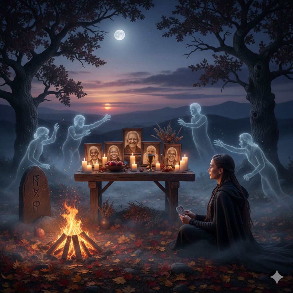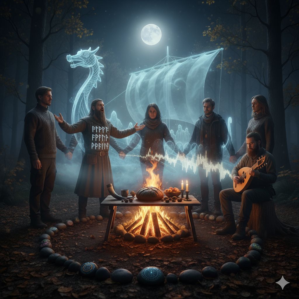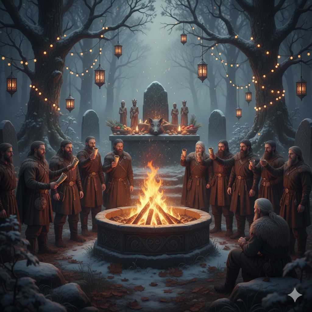 ​Honneur aux Ancêtres : Il était également une période clé pour honorer les ancêtres (les Disir ou déesses de la fertilité/du destin étaient honorées au Dísablót un peu plus tard).