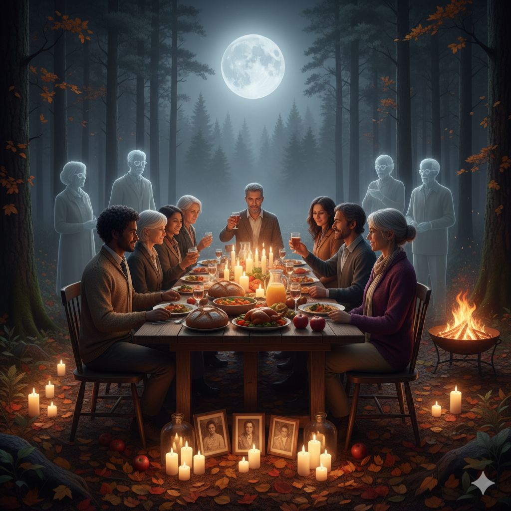 ​Le Banquet : Organisez un repas partagé (type Auberge Espagnole ou un service traiteur) où la nourriture est synonyme de confort et de rassemblement. Manger ensemble réaffirme le lien entre les vivants.