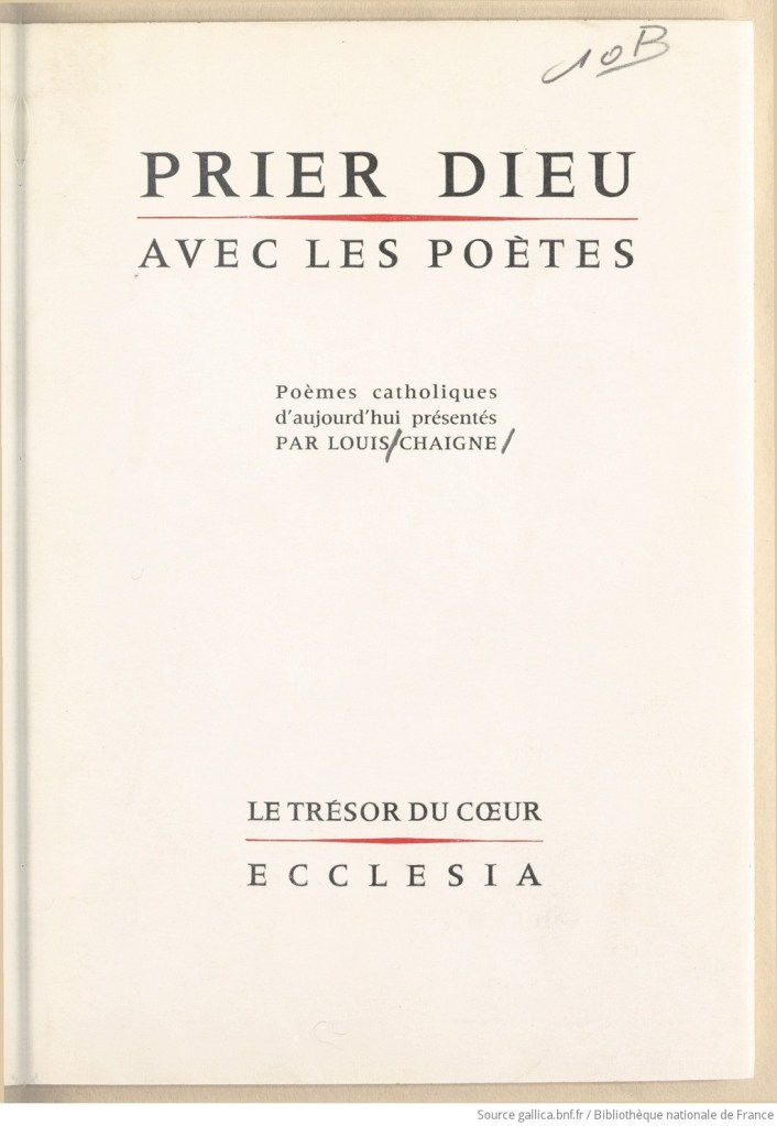 Prier Dieu avec les poètes : poèmes catholiques d’aujourd’hui / présentés par Louis Chaigne
