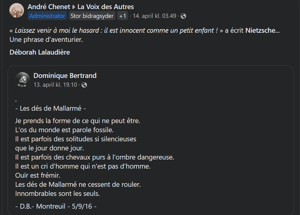 2 commentaires sur « Un coup de dés jamais n’abolira le hasard »