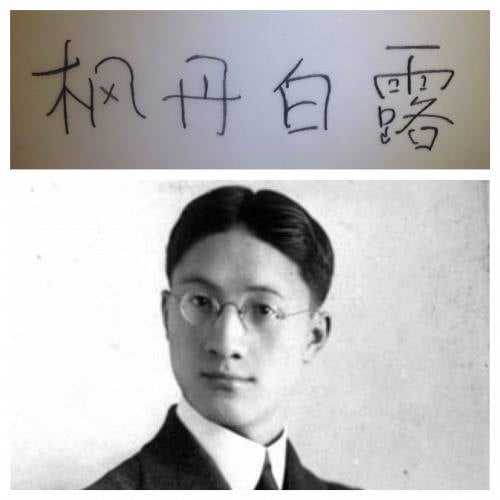 Pour en retranscrire son nom en idéogrammes dans ses poésies, il a dessiné une composition qui s’entend Fontainebleau et signifie littéralement : « La rosée du matin sur la feuille d’érable rouge ».