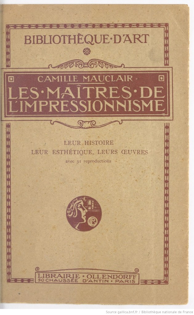 Titre : Les maîtres de l’impressionnisme : leur histoire, leur esthétique, leurs oeuvres (Nouvelle édition, revue et augmentée) / Camille Mauclair