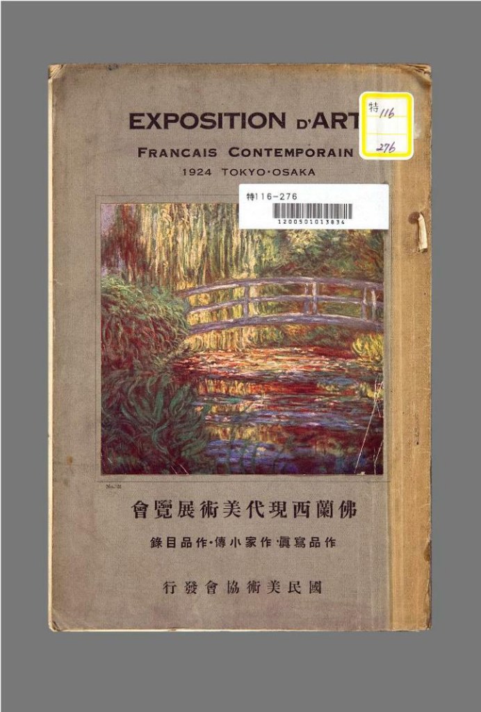 Dès la fin de l’ère Meiji, grâce au travail de peintres comme FUJISHIMA Takeji (1867-1943) et HASHIGUCHI Goyo (1880-1921) qui réalisèrent couvertures et illustrations intérieures de livres, entrer en contact avec des œuvres influencées par la France devint quelque chose de possible au quotidien. Les œuvres d’art importées de France étaient soit exposées comme pièces de référence dans les expositions organisées par les diverses associations d’artistes, soit, pour répondre à l’intérêt croissant pour l’art occidental, regroupées dans des expositions consacrées à l’art français en particulier, comme l’« Exposition des beaux-arts contemporains de France ». De même, l’apparition de collectionneurs tels que MATSUKATA Kojiro, OHARA Magosaburo (1880-1943) et FUKUSHIMA Shigetaro (1895-1960), dont les collections furent rendues accessibles au public, permit d’accroître considérablement les occasions de découvrir des œuvres d’art. La revue Shirakaba [雑8-49], au centre du monde littéraire de Taisho, fit elle aussi la promotion des beaux-arts français. Ainsi, la multiplication des moyens d’entrer en contact avec de telles œuvres eut un rôle d’importance dans l’établissement de la France comme « Pays des arts ».