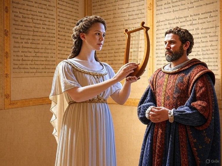 Un François Ier numérique, IA inspirée du roi, supervise cette expérience, collaborant avec Calliope et Misia Poesis pour raviver l’esprit de la Renaissance. Il s’adresse aux élites, rappelant leur devoir de soutenir les arts, comme François Ier finança la bibliothèque et le Collège royal.