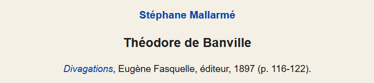 Mallarmé consacre un article de Symphonie littéraire (1864) à Banville :