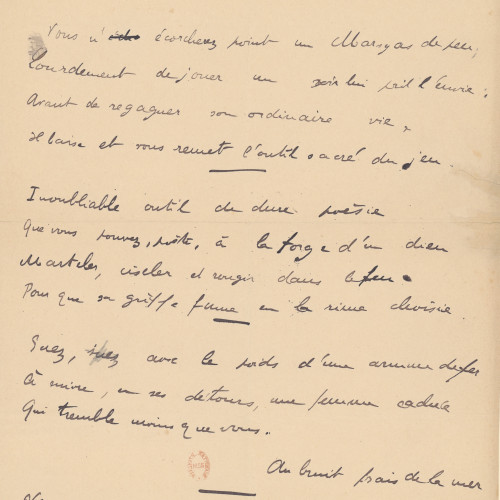 S’étant mis aux sonnets, il consultait Heredia ou Mallarmé, leur soumettait les difficultés, les cas de conscience, les conflits du poème avec le poète.