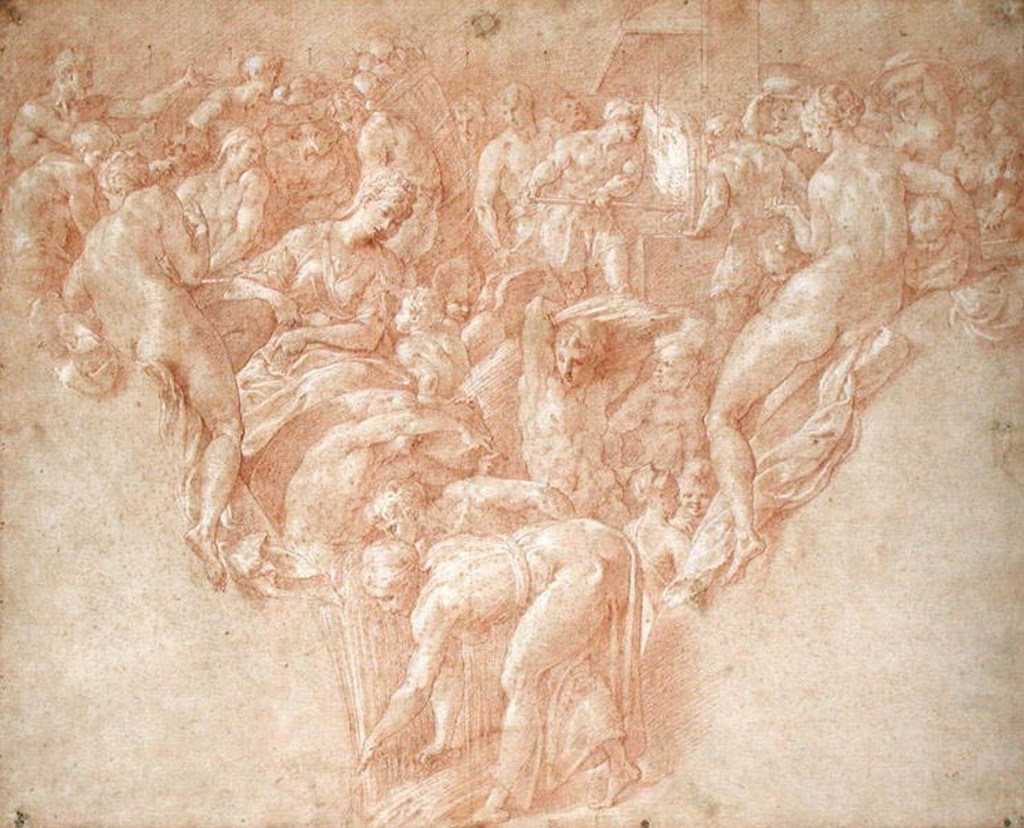Primatice à la charge de la décoration des murs de la salle de bal du château de Fontainebleau qui représente un ensemble de huit pendentifs dans l’entre-deux des fenêtres. Il est avéré que, si Primatice conçut l’intégralité des compositions pour cette salle, il ne les peignit pas, laissant cette tâche à Nicolo dell’Abate. L’exécution dura environ quatre ans (1552-1556). Deux dessins de Chantilly correspondent à un travail préparatoire : ce dessin et Bacchus ou Les Plaisirs du vin (Inv. 147 (137))