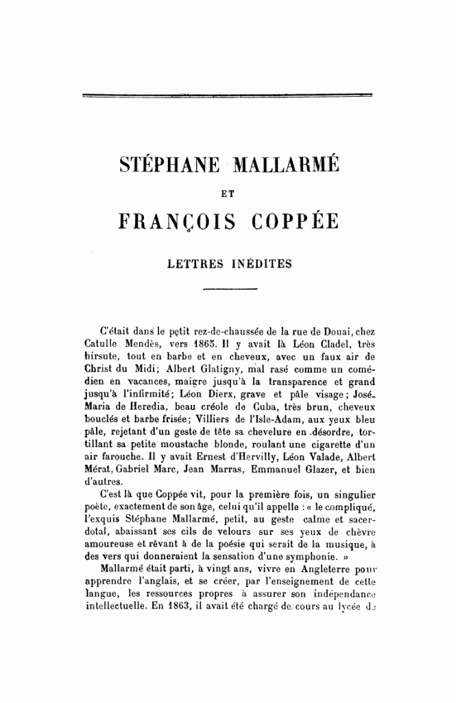 Coppée rencontre Mallarmé rue Douai chez Catulle Mendès