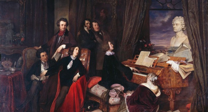Le tableau de Josef Danhauser illustre plusieurs thèmes essentiels du romantisme. Tout d’abord, Danhauser suggère la dimension européenne de ce courant : Byron, Hugo, Beethoven, Paganini, Liszt, sont de nationalités différentes, mais elles s’effacent toutes dans le culte de la musique. Liszt, en particulier, est le plus représentatif de ces artistes ouverts aux autres cultures européennes : de Budapest à Paris, de Weimar à Rome, son existence est une succession de périodes créatrices attachées à divers lieux. D’autre part, l’œuvre de Danhauser évoque la synthèse de tous les arts, thème cher aux artistes du XIXe siècle : par le biais de la peinture, il montre que la musique et la littérature sont réunies dans le culte du génie romantique par excellence, Beethoven. C’est lui qui apparaît ici comme le véritable inspirateur de l’art romantique : Liszt, Berlioz, Wagner, Schumann, Hugo lui-même, ne cesseront de le proclamer.