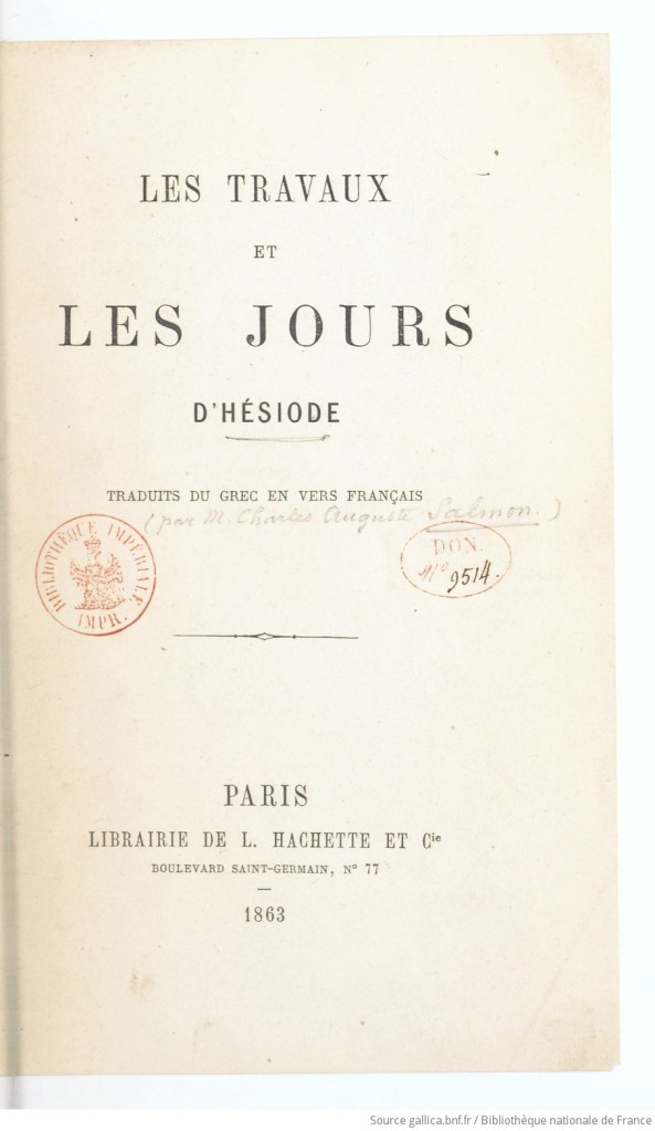 Les Travaux et les Jours -Ἔργα καὶ Ἡμέραι / Érga kaì Hēmérai