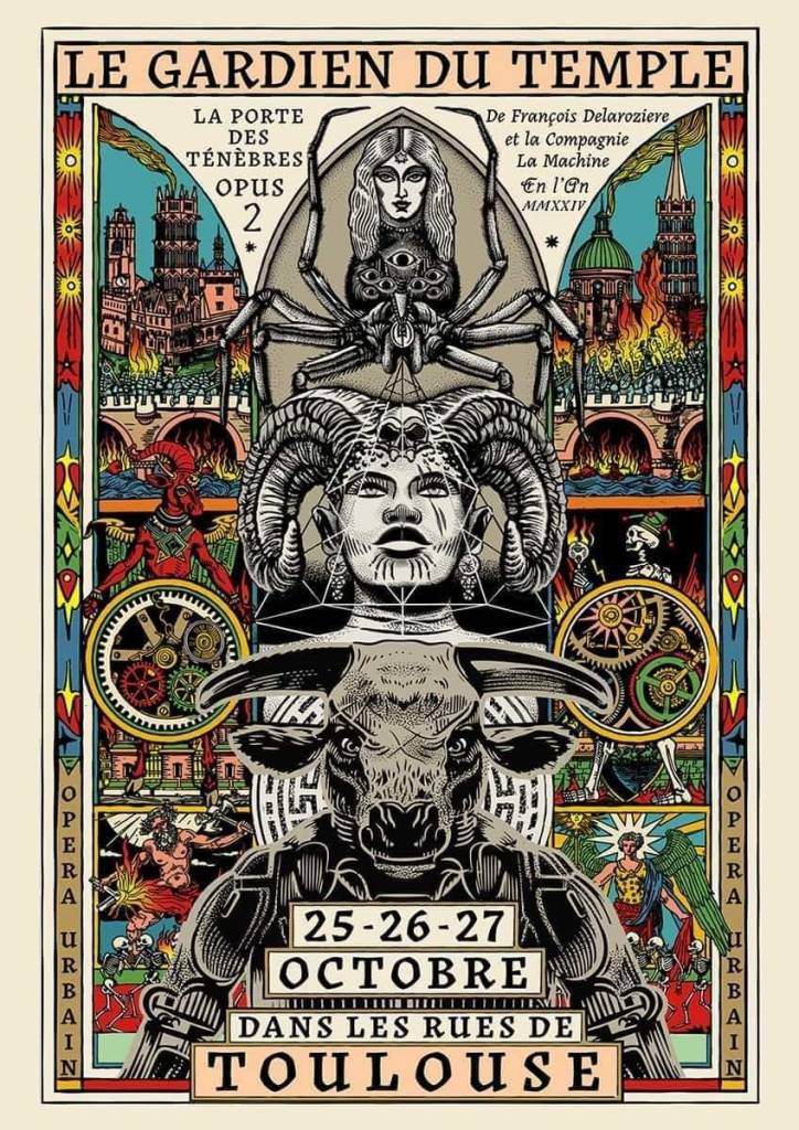 Après les cérémonies d’ouverture et de clôture des JO de Paris, le satanisme décomplexé s’affiche en plein cœur de Toulouse, sous la forme d’un « opéra urbain » gratuit du vendredi 25 au dimanche 27 octobre 2024 dans les rues. Organisé par Toulouse Métropole, imaginé par François Delarozière et la compagnie La Machine. Pendant 3 jours, 3 Machines géantes (Astérion le Minotaure, Ariane la Grande Araignée et Lilith la Gardienne des Ténèbres) parcourent le centre-ville de Toulouse. Avec en prime une affiche « alléchante » où l’on peut voir la Basilique Saint Sernin, la Chapelle Saint Joseph de la Grave et le Couvent des Jacobins en flamme!