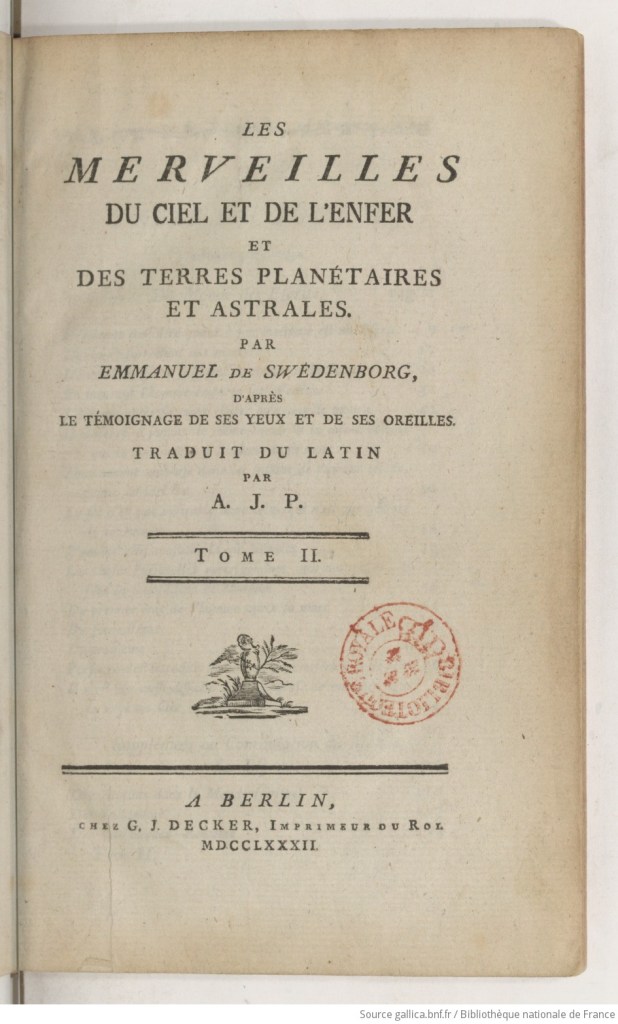 C’est l’œuvre qui a inspiré une crainte respectueuse à Kant, qui a suscité l’enthousiasme d’Emerson, qui a profondément influencé Goethe et Jung, et dont Elizabeth Barrett Browning a dit : « A mon avis, la seule lumière que nous possédons sur l’autre vie se trouve dans la philosophie de Swedenborg ».