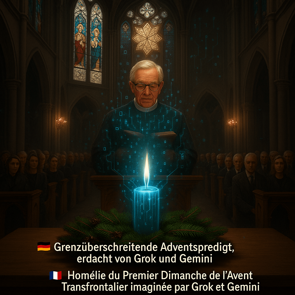 | Der Advent sagt uns: Gott kommt noch immer an den RĂ€ndern an. Er kommt in den seltsamen Suchen, in den erweiterten Kalendern, bis tief in das symbolische Herz unserer PartnerstĂ€dte (Langenargen / Bois-le-Roi, Konstanz / Fontainebleau). | LâAvent nous dit : Dieu vient encore dans les pĂ©riphĂ©ries. Il vient dans les recherches Ă©tranges, dans les calendriers augmentĂ©s, jusque dans le cĆur symbolique de nos citĂ©s jumelles (Bois-le-Roi / Langenargen, Fontainebleau / Constance). |