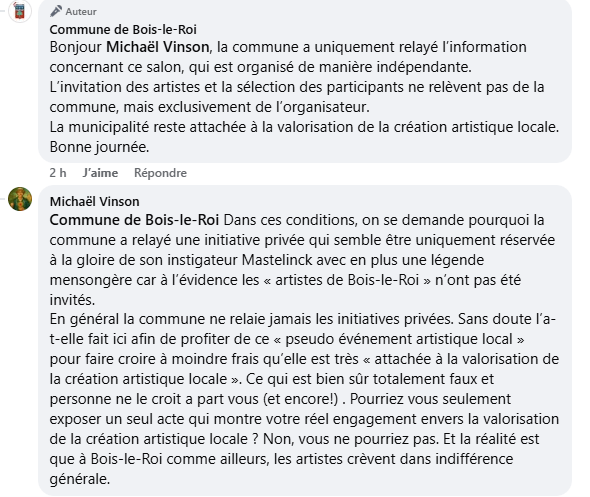 - L’échange initial sur la page Facebook de la commune de Bois-le-Roi