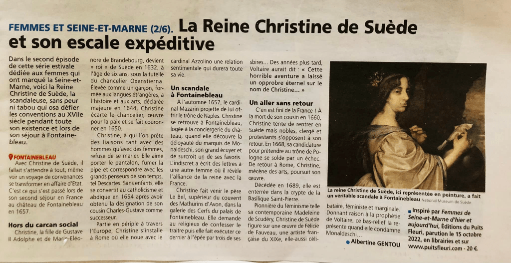 La Reine Christine de Suède et son escale expéditive à Fontainebleau