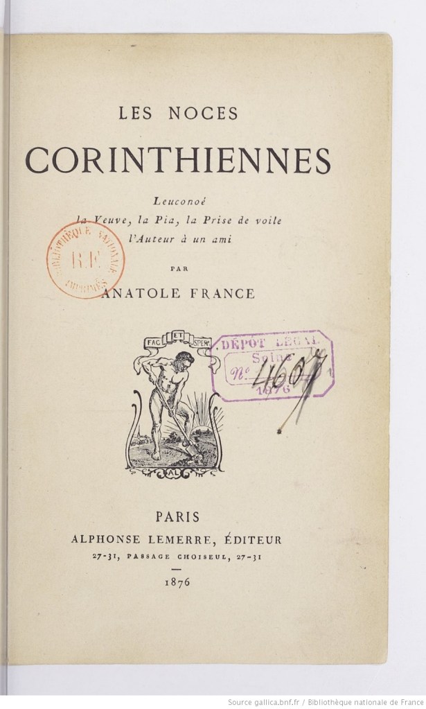 C’est l’une des trois œuvres en vers d’Anatole France, qui appartient à ses œuvres de jeunesse ; il les dédie à Leconte de Lisle.