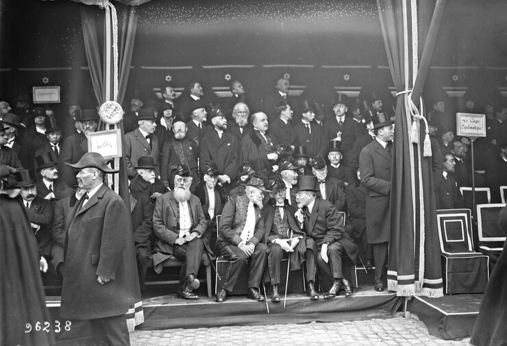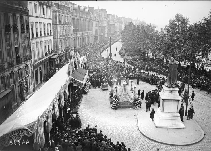 18/10/24, les académiciens aux obsèques d’Anatole France [estrade, quai Malaquais] : [photographie de presse] / [Agence Rol], 1924