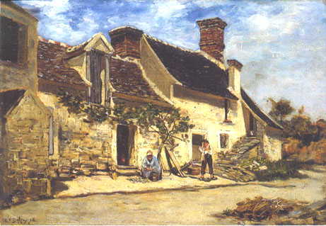 Personnages devant la ferme, Bois le Roi