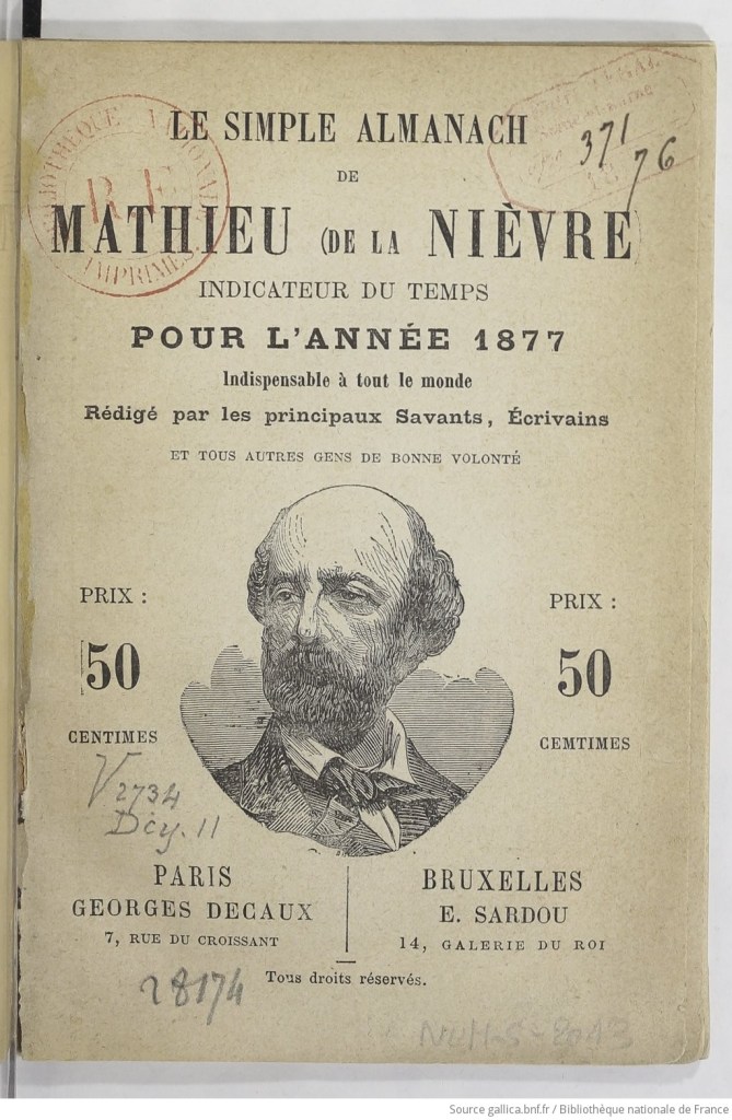 itre : Le Simple almanach de Mathieu (de la Nièvre)… : indicateur du temps pour l’année … : indispensable à tout le monde : rédigé par les principaux savants, écrivains et tous autres gens de bonne volonté