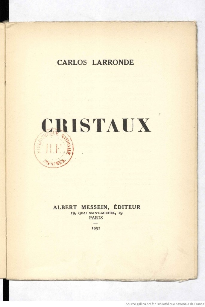 Cristaux – Poèmes de Carlos Larronde – 1931