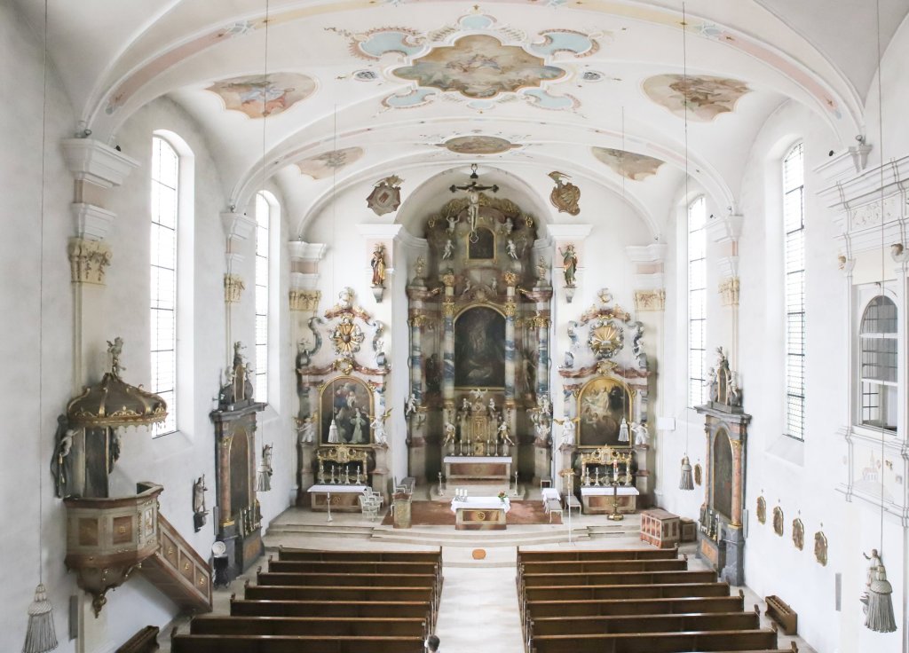 Die Katholische Pfarrkirche St. Martin ist eine der Perlen an der Oberschwäbischen Barockstraße und von kunstgeschichtlicher Wertschätzung.