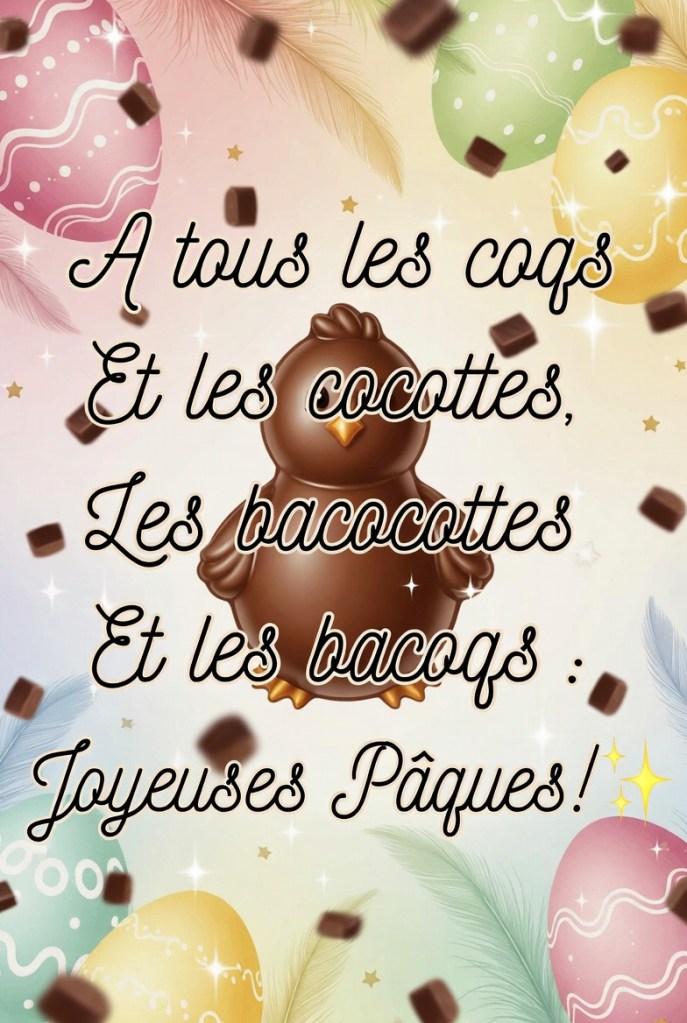 La CoqParade du Pays de Fontainebleau et l’Art sur le Chemin du Chocolat souhaitent à tous les bacoqs et les bacocottes de Joyeuses Pâques !