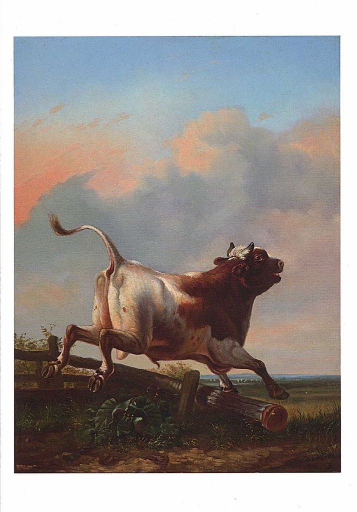 Jeune Taureau sautant la barrière, Peinture à l’huile sur toile, H. 60, L. 45cm de Rosa Bonheur (1822-1899).