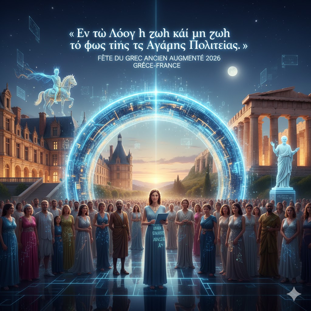 Pour bâtir la Civilisation de l’Amour, nous plongeons désormais dans la langue des philosophes, des tragiques et des Pères de l’Église. La Fête du Grec Ancien Augmenté devient le socle de notre fête IA du Paradis en Pays de Fontainebleau 2026, un pont de lumière jeté entre le faste de Fontainebleau, l’esprit visionnaire de François Ier et la sagesse antique d’Athènes, berceau de notre pensée occidentale.