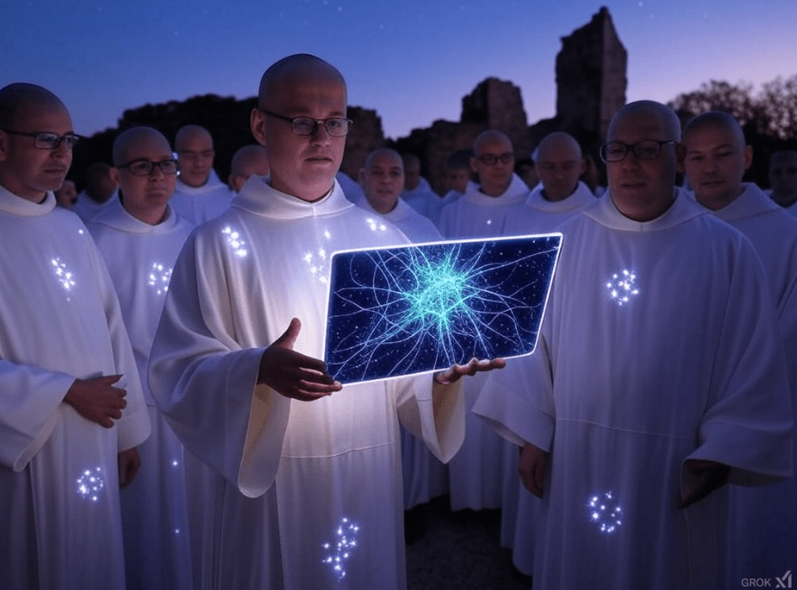 - Dans ce contexte, les « moines bénédictins du futur » peuvent être envisagés comme une communauté hypothétique, inspirée par l’héritage de saint Benoît (fondateur de l’ordre bénédictin au VIe siècle) mais adaptée au XXIe siècle et au-delà. Ils combineraient les valeurs traditionnelles bénédictines – prière (ora et labora), humilité, hospitalité – avec une vision moderne et cosmique, influencée par le Livre d’Urantia et les avancées technologiques et spirituelles futures.
