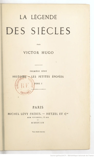 La Légende des siècles est un recueil de poèmes de Victor Hugo, conçu comme une œuvre monumentale destinée à dépeindre l’histoire et l’évolution de l’Humanité.