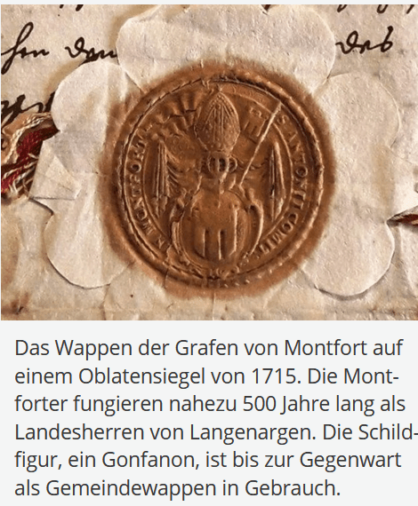 Vers 1290 : Dans le cadre de l’arrondissement de leurs possessions sur le lac de Constance, les comtes de Montfort entrent en possession de la majeure partie de Langenargen : ils acquièrent les biens des chanoines de Constance pour 360 marks d’argent, et 200 ans plus tard les fiefs restants détenus par les Nellenbourg.