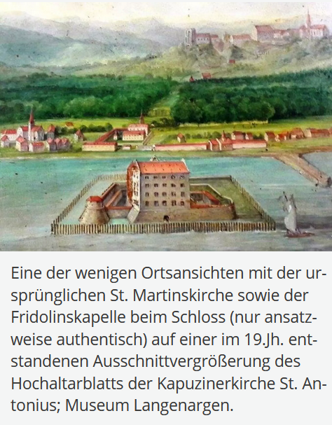 1275 : Dans les entrées d’un livre fiscal du diocèse de Constance pour la collecte de la dîme de la croisade papale, une paroisse catholique à « Argun » est mentionnée pour la première fois dans un document. L’église paroissiale de Saint-Martin, avec le cimetière et le centre-ville, était à l’origine située sur un site légèrement surélevé et probablement partiellement fortifié sur l’actuelle rue Sainte-Anne, qui est protégée des ennemis et des inondations.