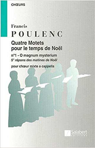 Francis Poulenc (1899-1963) commence un cycle de motets qu’il achève en mai de l’année suivante, et pour lesquels il choisit les textes propres au Temps de Noël. Ces quatre motets, «pendant aux austères Pénitence», sont à l’opposé des pièces pour Pâques — les Quatre motets pour un Temps de Pénitence — écrites entre 1938 et 1939. Mais il ne s’agit pas d’un cycle strictement festif, puisqu’une gradation du plus sombre au plus joyeux s’opère au fil des quatre motets. O magnum mysterium rend compte de manière presque angoissée du mystère de la Nativité. Le second motet, Quem vidistis pastores dicite, sous-tend une mélodie mélancolique et inquiète d’un accompagnement de sons à bouche fermée. Videntes stellam installe un ton plus confiant, avant le quatrième motet, Hodie Christus natus est, enfin franchement joyeux, rythmique, bondissant.