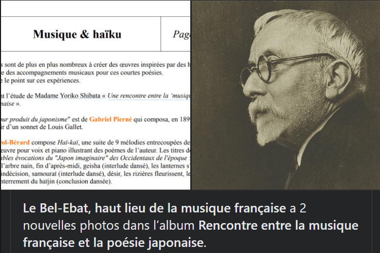 Le premier « pur produit du japonisme » est de Gabriel Pierné qui composa, en 1899, Boutique japonaise, à partir d’un sonnet de Louis Gallet http://www.100pour100haiku.fr/ploc/la%20lettre%20du%20haiku%20ploc12-association%20pour%20la%20promotion%20du%20haiku.pdf