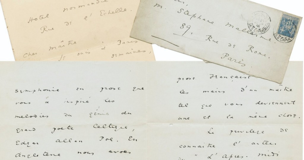 Le mardi 24 février 1891, Mallarmé lui a offert un exemplaire de la grande édition du Corbeau de Poe illustré par Manet (Correspondance, IV, note p. 203). Dans cette lettre, Wilde le remercie de son généreux cadeau : « Cher Maître, comment dois-je vous remercier pour la gracieuse façon avec laquelle vous m’avez présenté la magnifique symphonie en prose que vous a inspiré les melodies du genie du grand poète celtique, Edgar Allan Poe. En Angleterre nous avons de la prose et de la poesie, mais la prose française dans les mains d’un maître tel que vous deviennent une et la même chose. Le privilège de connaitre l’auteur du [sic] L’Après-midi d’un Faune est on ne peut plus flatteur, mais de trouver en lui l’accueil que vous m’avez montré est une verité inoubliable. »
