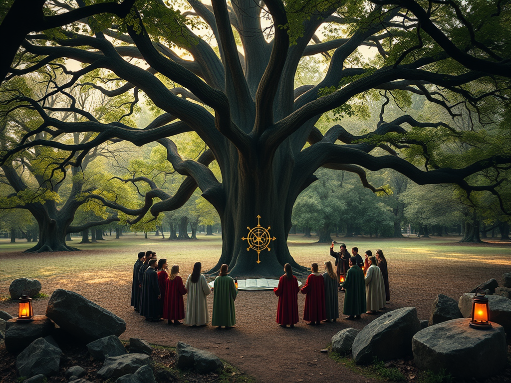 Dans la forêt de Fontainebleau, des clairières deviennent des scènes de célébration écologique et mystique, liant les chênes aux constellations grecques et à Urantia :- Le Zodiaque de Fontainebleau : Des sculptures lumineuses en bois, inspirées du zodiaque fictif que tu proposes, sont placées sous les chênes, représentant les signes astrologiques (Bélier, Taureau, etc.) mêlés aux cercles d’Urantia. Chaque signe porte un poème de Sophia, en grec ancien, latin et français, comme : « Le Taureau des Chênes »