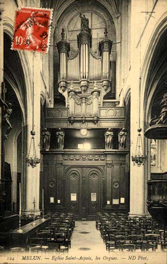 Carte postale de l’ancien orgue de l’église Saint-Aspais (Melun 77),