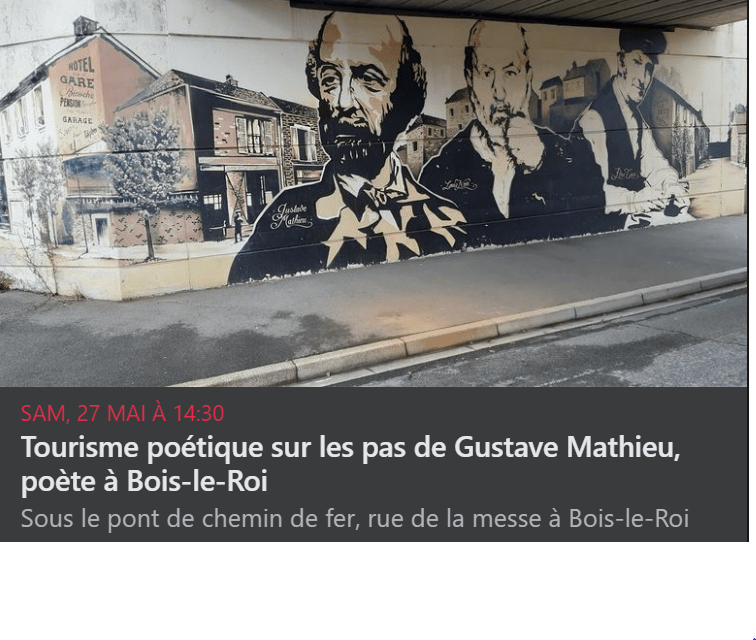 Samedi 27 mai 2023, tourisme poétique sur les pas de Gustave Mathieu, poète à Bois-le-Roi