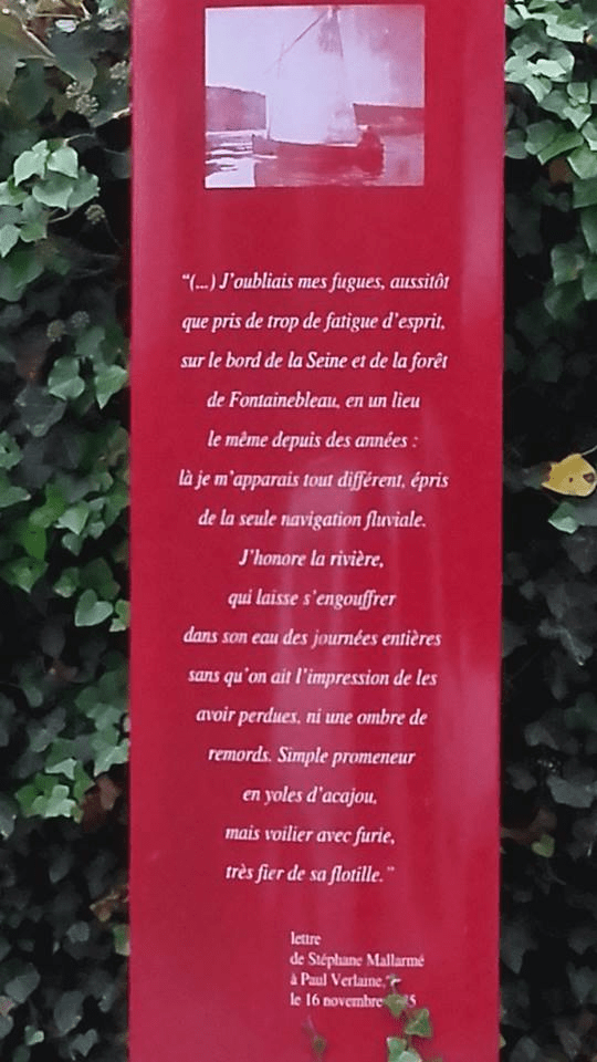 – Découverte de Valvins, le lieu de prédilection du poète : « tout le monde a un pays natal, moi j’ai adopté Valvins » (Mallarmé)