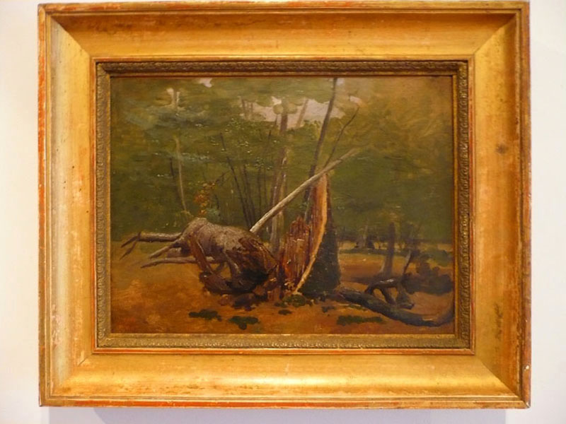 Ce « détail de tronc d’arbre » est tout à fait caractéristique des recherches de « motifs » qui permettaient aux artistes de se constituer un répertoire de formes et de sujets et de s’exercer à représenter avec exactitude la texture contrastée des matériaux ou les effets de lumière.