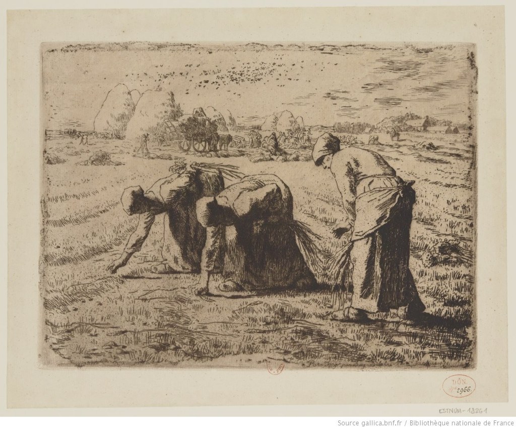Sur Gallica, découvrez l’œuvre de Jean-François Millet à travers un choix de ses gravures, comme « Les Glaneuses » ou « Le Semeur ».
