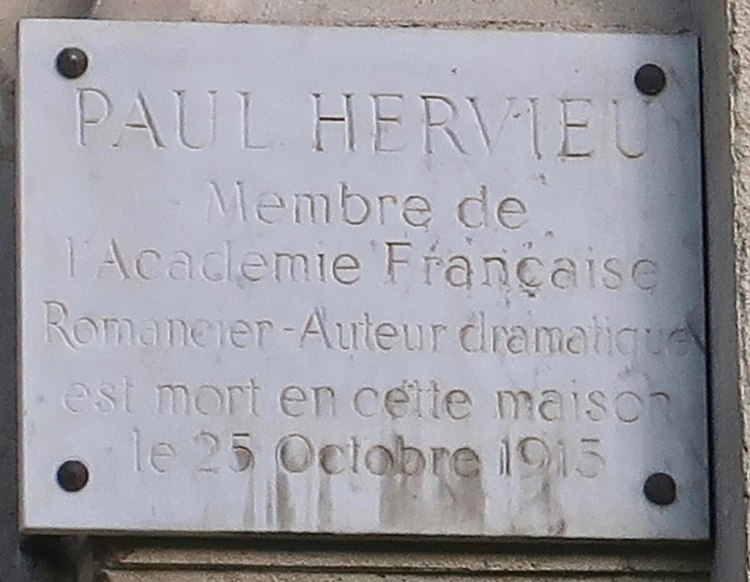 Paul Hervieu, né le 2 septembre 1857 à Neuilly-sur-Seine et mort le 25 octobre 1915 en son domicile dans le 16 arrondissement de Paris, est un romancier et auteur dramatique français.
